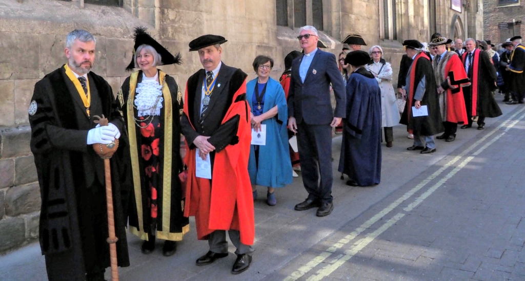 The preacher was our own Chaplain, Rev Liz Hassall. As ever, visitors to the City were a bit confused to see us processing with badges, gowns and maces, and we were grateful to the Lord Mayor’s chauffeur who cleared a path through the crowds on the Shambles. The coffee and biscuits were most welcome on our return to Bedern Hall.